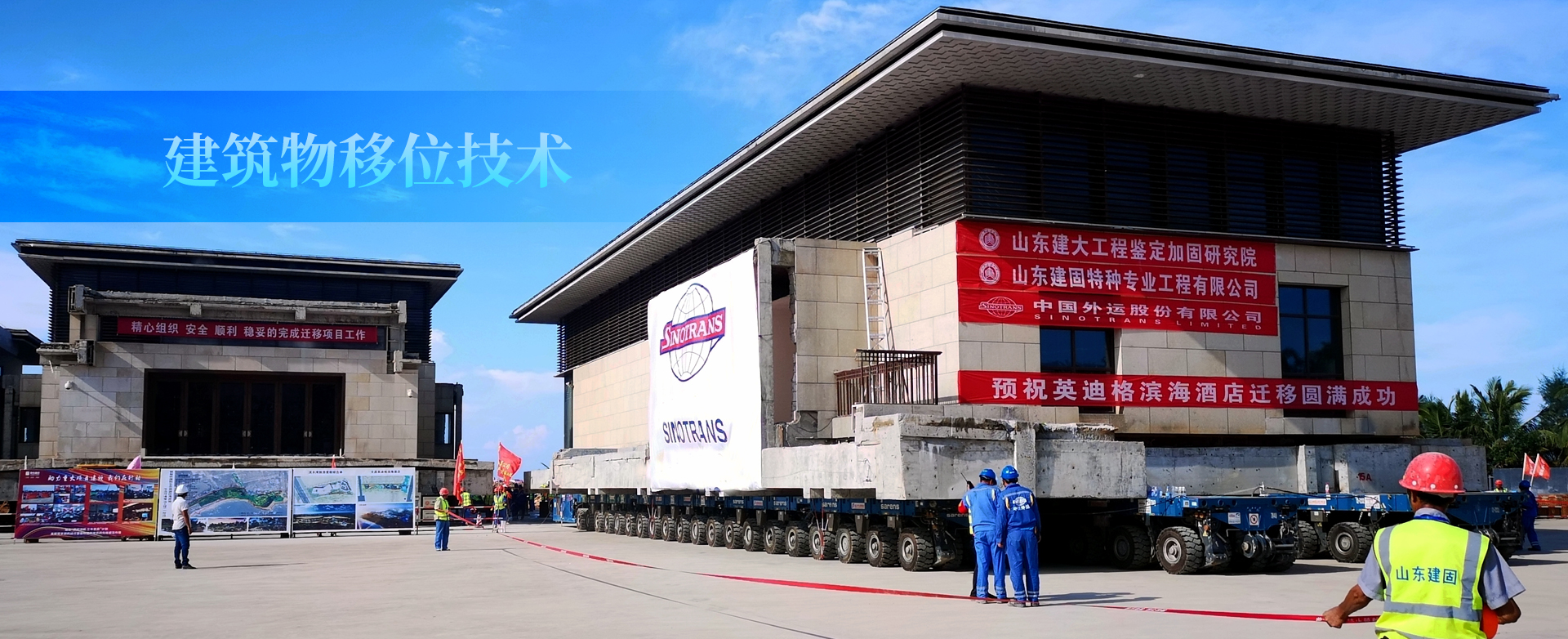 目前國內建筑物拖車移位規模最大、單體最重、單體最長的建筑物拖車移位--海南英迪格濱海酒店移位設計、移位施工、檢測鑒定、健康監測